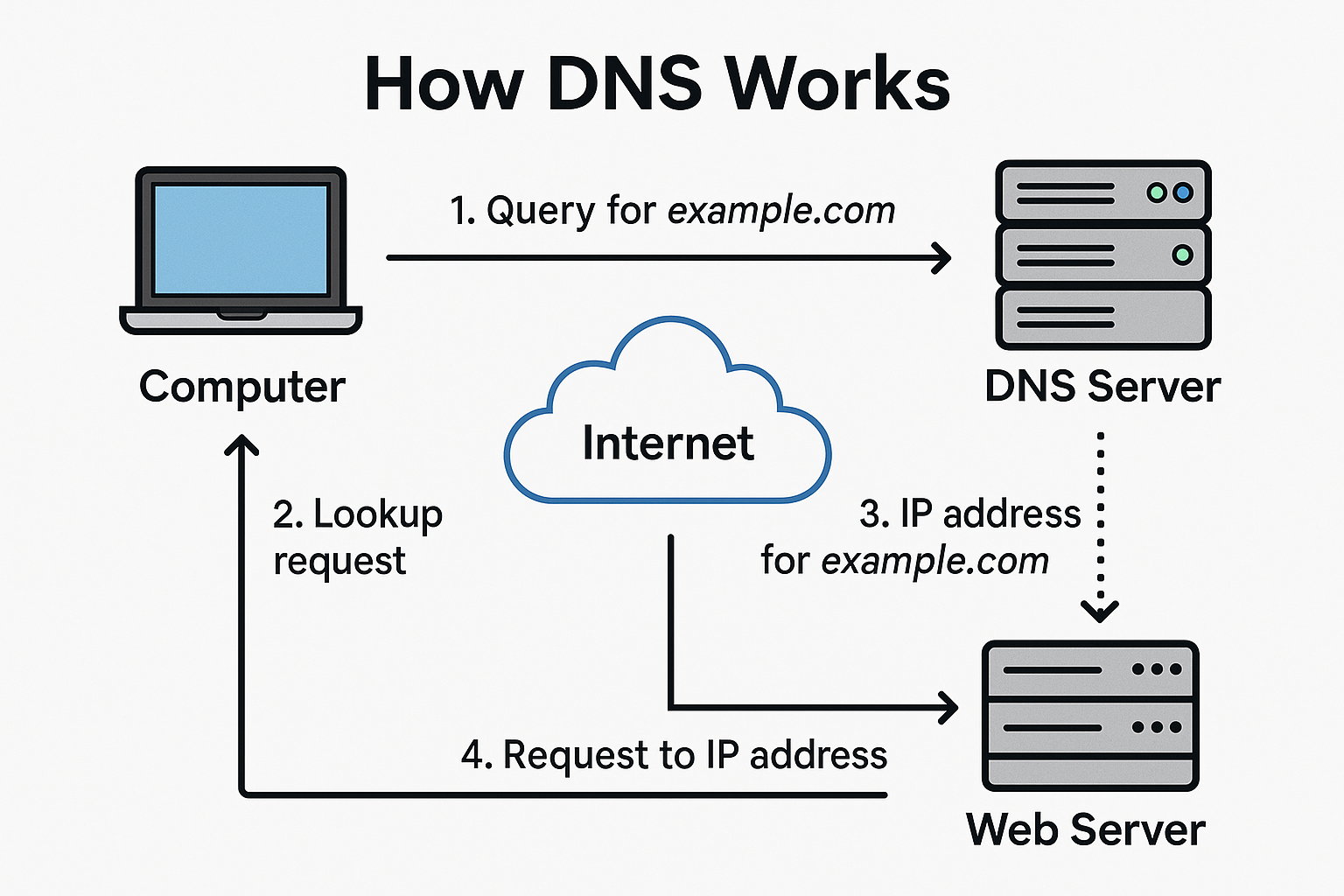 DNS(域名系统) 是互联网的基础服务之一,用于将人类可读的域名(如 jester-blog.cc)转换为机器可读的 IP 地址(如 192.0.2.1),从而实现设备之间的通信。