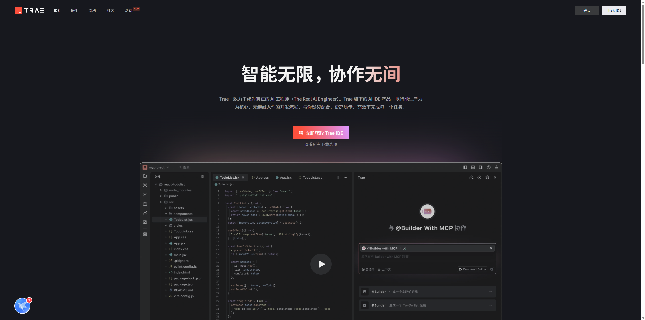 Trae IDE 是字节跳动推出的一款 AI 驱动的集成开发环境,它基于 VSCode 核心进行深度定制,集成了多种大型语言模型(如 Claude-3.5-Sonnet、Claude-3.7-Sonnet、GPT-4o 等),旨在通过自然语言交互与“Builder 模式”极大提升代码生成、错误修复和项目构建的效率。Trae 完全免费,不限功能开放 GPT-4o 与 Claude 模型,无需订阅费用,支持插件生态与 VSCode 扩展,实现对现有项目、扩展和配置的无缝兼容。